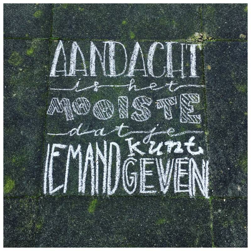Op instagram neem ik bewust deel aan een challenge: elke dag van de maand een quote handletteren. Bewust, omdat ik niet altijd puf heb om te beginnen, maar als ik het doe, ik het leuk vind. Vandaag een extra uitdaging om de quote met stoepkrijt te letteren. Ik heb de puf niet, maar begin toch, en dan wordt het toch weer leuk