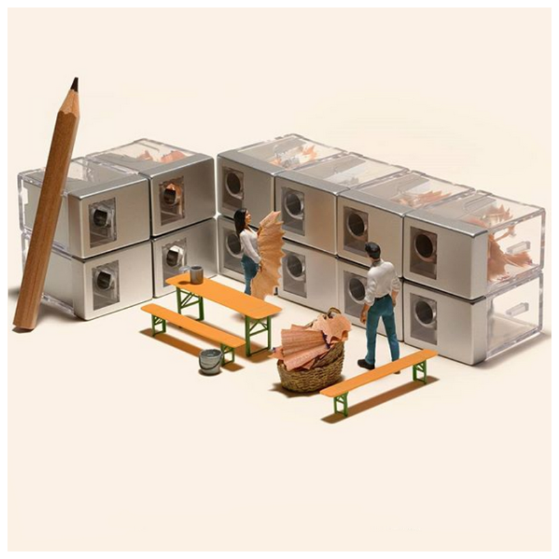 Hij kwam al vaker voorbij: Tanaka Tatsuya, die elke dag miniatuurtjes maakt met dagelijkse spullen. Vandaag weer een prachtige