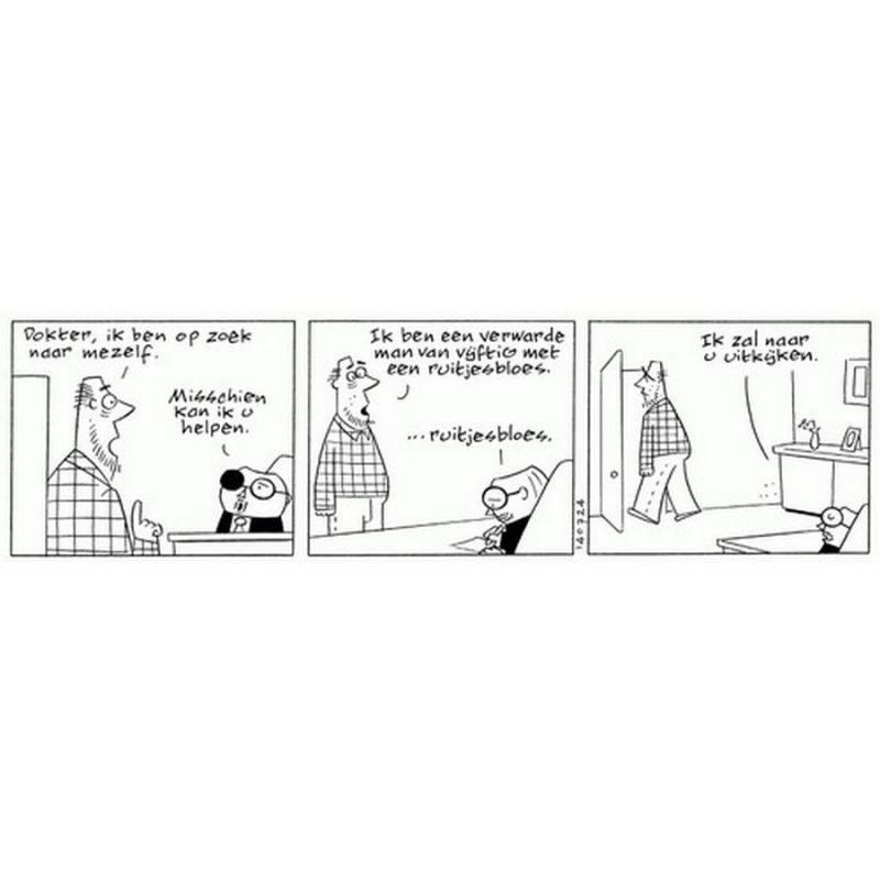 Bij de arts van de bijzondere gesprekken hangt deze cartoon van mij op zijn kamer. Direct als hij mij vandaag uit de wachtkamer ophaalt, zegt hij dat hij daaraan moest denken bij een stripje van Sigmund, dat hij bewaard heeft. Geweldig