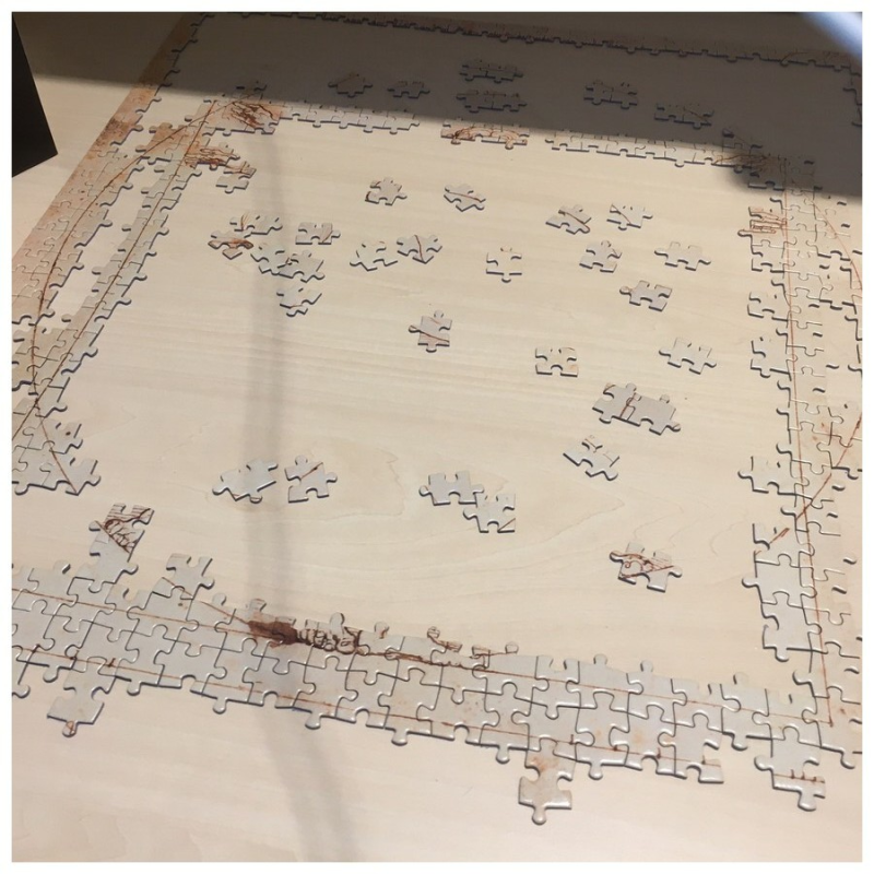 Van de duizend stukjes heeft pakweg de helft dezelfde kleur. Maar goed, ik wilde zelf die uitdaging...