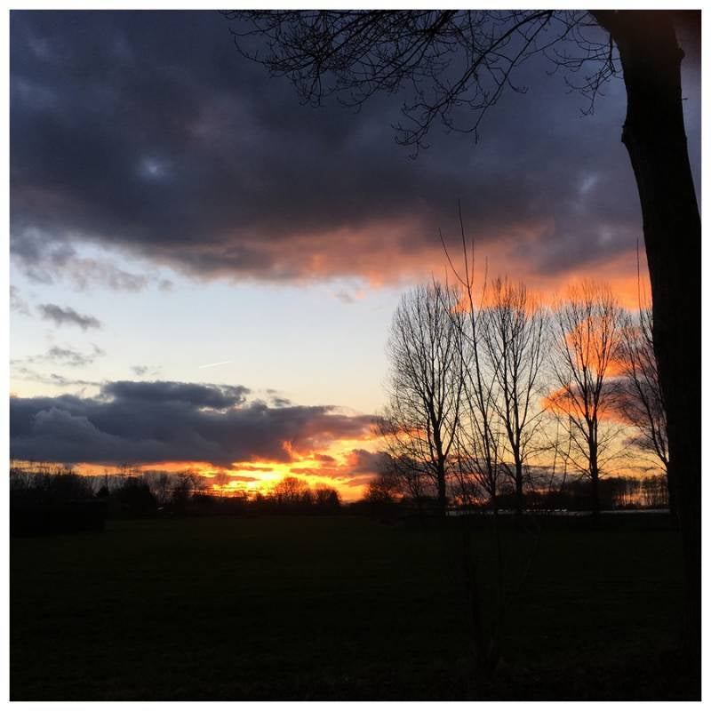 Vanochtend twijfelde ik erg of ik op de fiets naar mijn werk zou gaan. Gelukkig deed ik dat wel, en zag op de terugweg daardoor uitgebreid een adembenemende zonsondergang