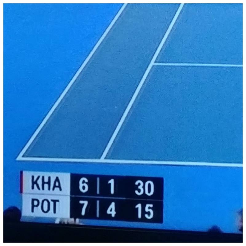 Toevalligheden die heel grappig zijn, zoals deze stand bij een tenniswedstrijd