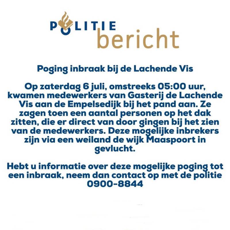 Wat een ophef over een "mogelijke poging"... Het was geen mogelijke inbraak. En ook geen poging tot inbraak. Maar een mogelijke poging... De kans dat dat werkelijk tot een inbraak geleid zou hebben, lijkt mij klein. Want al waren ze van plan een poging te doen, helemaal zeker was dat nog niet: mogelijk zou er een poging komen. Wat een ophef