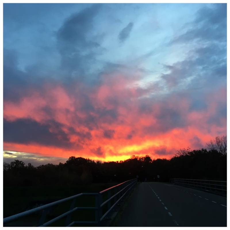 Op de heenweg naar Utrecht reden we in de zonsopgang, en op de terugweg in de zonsondergang. Allebei prachtig
