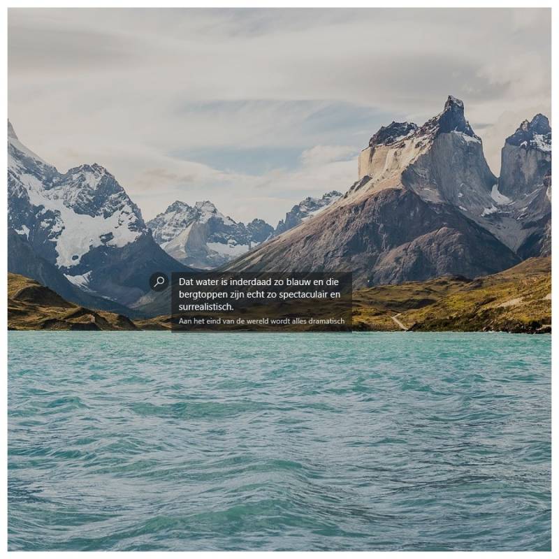 Op het werk hebben we Windows 10. Op het startscherm verschijnen dagelijks mooie foto's, met de meest vreemde beschrijvingen. Iemand moet dat verzinnen. Iemand heeft een baan, waarin hij of zij acht uur kan nadenken over een landschapsfoto, en er dan "aan het eind van de wereld wordt alles dramatisch" bij kan zetten. Kan ik solliciteren?