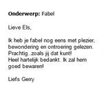 Bij het 25-jarig jubileum van een collega heb ik een zelfgeschreven fabel voorgelezen. Vandaag stuurt deze collega een lieve mail om nogmaals te bedanken. Dat raakt me